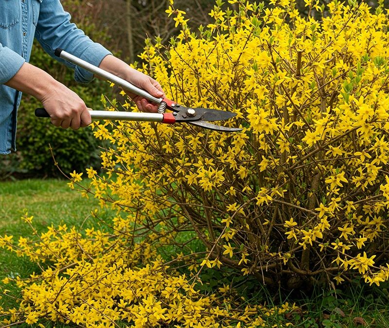 - Arbustes à floraison printanière (forsythia, cognassier, weigelia) : taillez juste après leur floraison pour ne pas supprimer les bourgeons de l’année suivante.